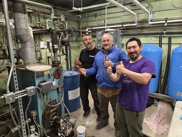 in 1972, had finally failed, putting the community at risk of losing its water supply entirely. Thanks to the parts donated by industry friends like TACO Comfort Solutions and U.S. Boiler that we brought with us, we were able to repair the system, restore heat, and ensure continued water service for the entire village.